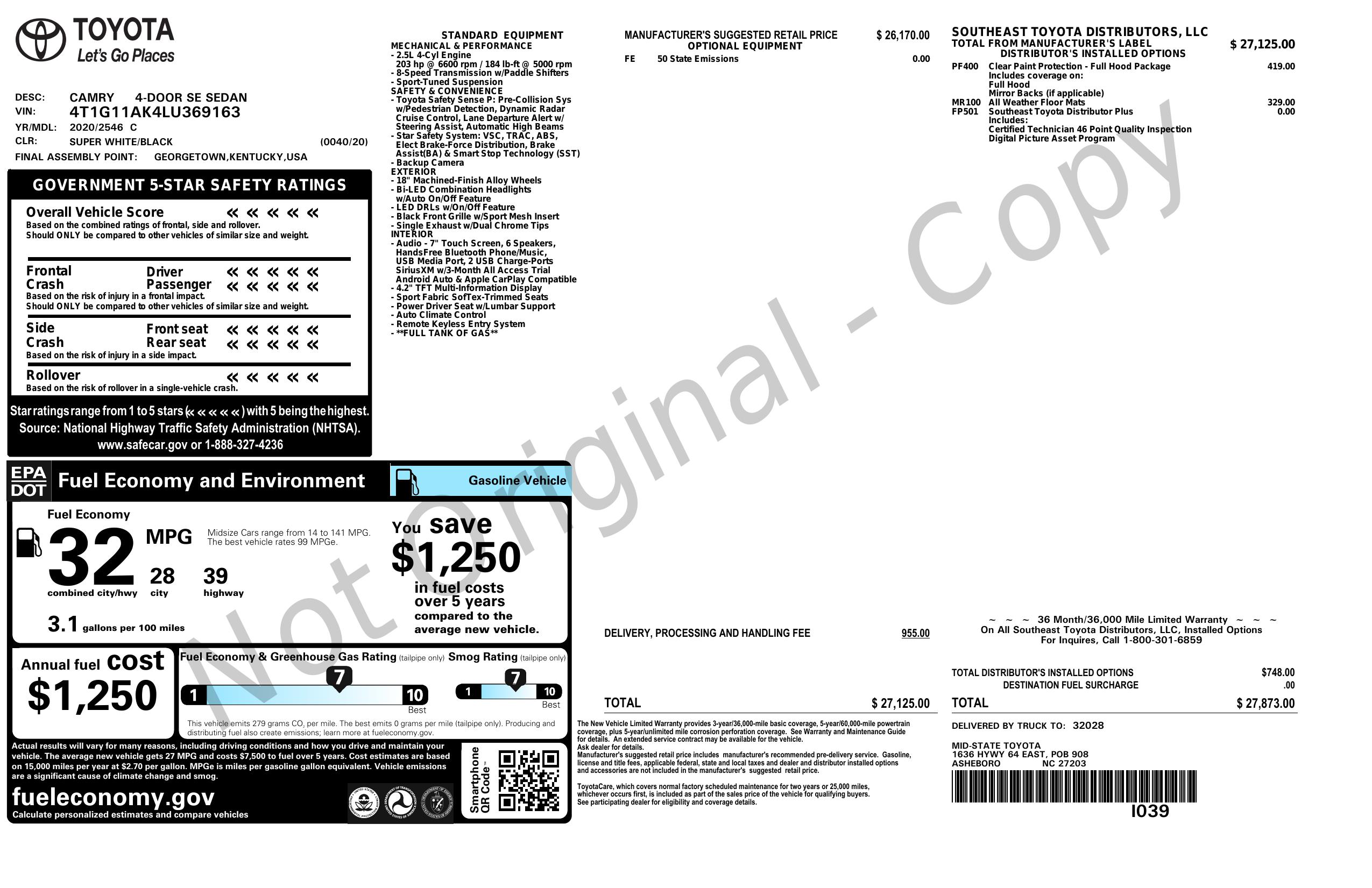 One of the best parts about this 2020 Toyota Camry is that a Carfax report is available, giving you full transparency and confidence in your purchase. You can hit the road knowing the history of your vehicle and drive with peace of mind.