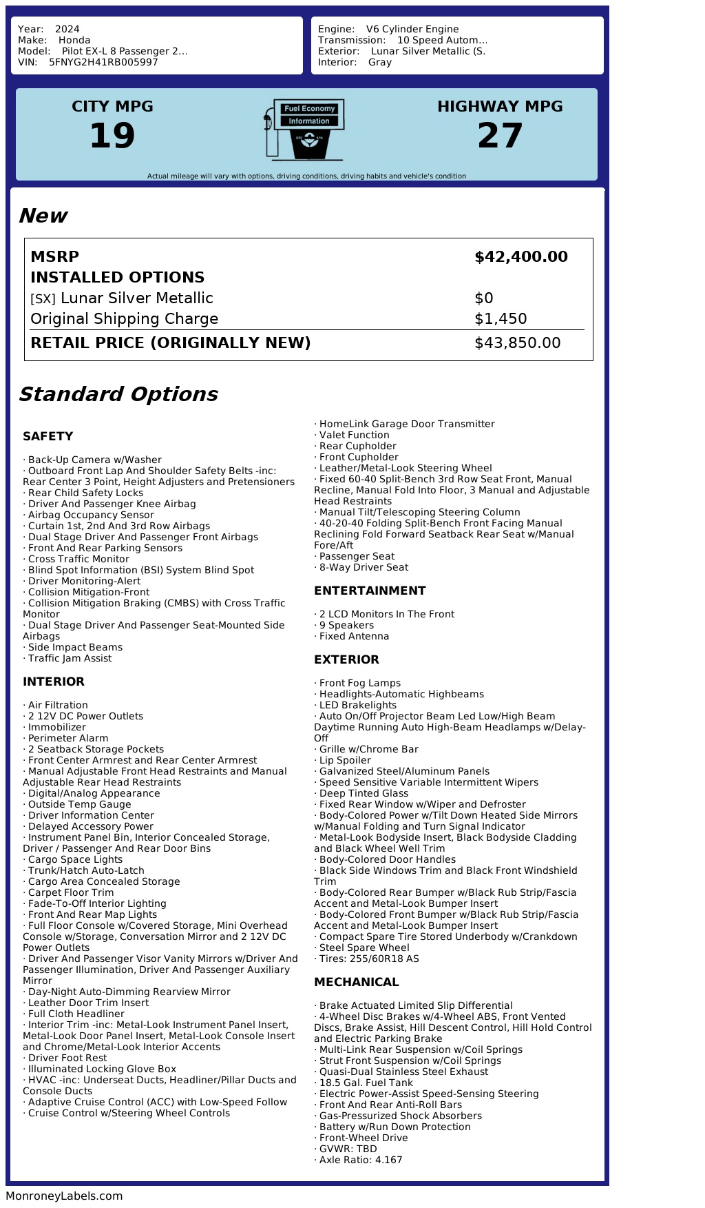 But safety doesn't stop there - this Honda Pilot is equipped with a comprehensive airbag system to keep you and your passengers safe in the event of a collision. From dual front airbags to side, head, and rear head airbags, this vehicle has you covered from every angle. The active seatbelts provide an added layer of protection, ensuring that you arrive at your destination safely every time.