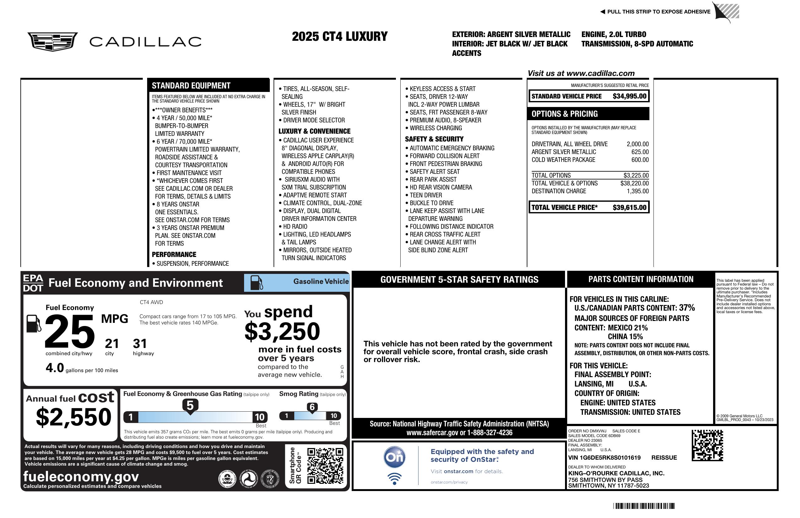 One of the best features of this 2025 Cadillac CT4 is the fact that a Carfax report is available, so you can buy with confidence knowing the history of this vehicle. With its luxurious interior, impressive performance, and a host of convenient features, this Cadillac CT4 is the perfect blend of style and functionality. Don't miss your chance to own this incredible vehicle - come take it for a test drive today!